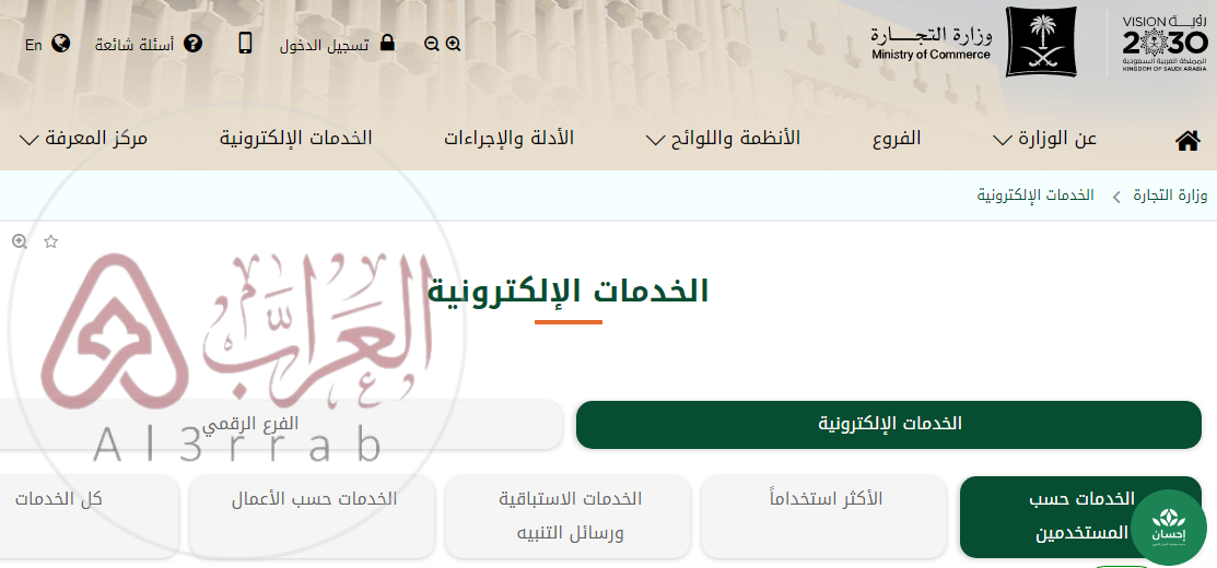 - الدخول على الموقع الرسمي لوزارة التجارة: “من هنا“.