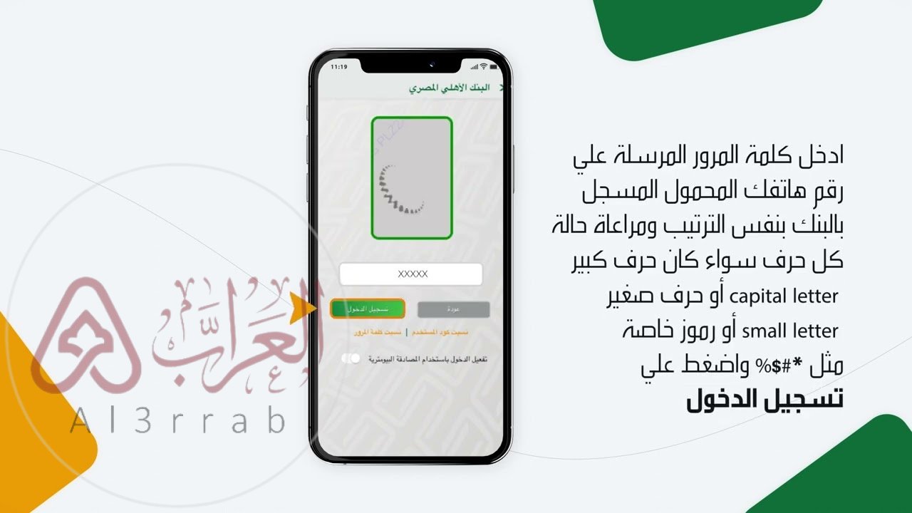 • رقم بطاقة الأهلي الصراف الآلي وكلمة المرور.