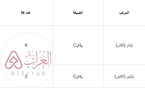 - الألكاينات: تحتوي على رابطة ثلاثية → أقل في عدد الهيدروجين.